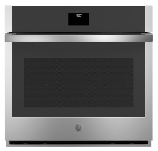 GE® 30" Stainless Steel Single Electric Wall Oven features No Preheat Air Fry, True European Convection, Anywhere control with remote notifications, Remote Monitored Temperature Probe, Self-Clean with optional Steam Clean, Never scrub, heavy-duty racks, Hidden backlit LCD control, 10-pass hidden bake element, and 8-pass broil element.Read More