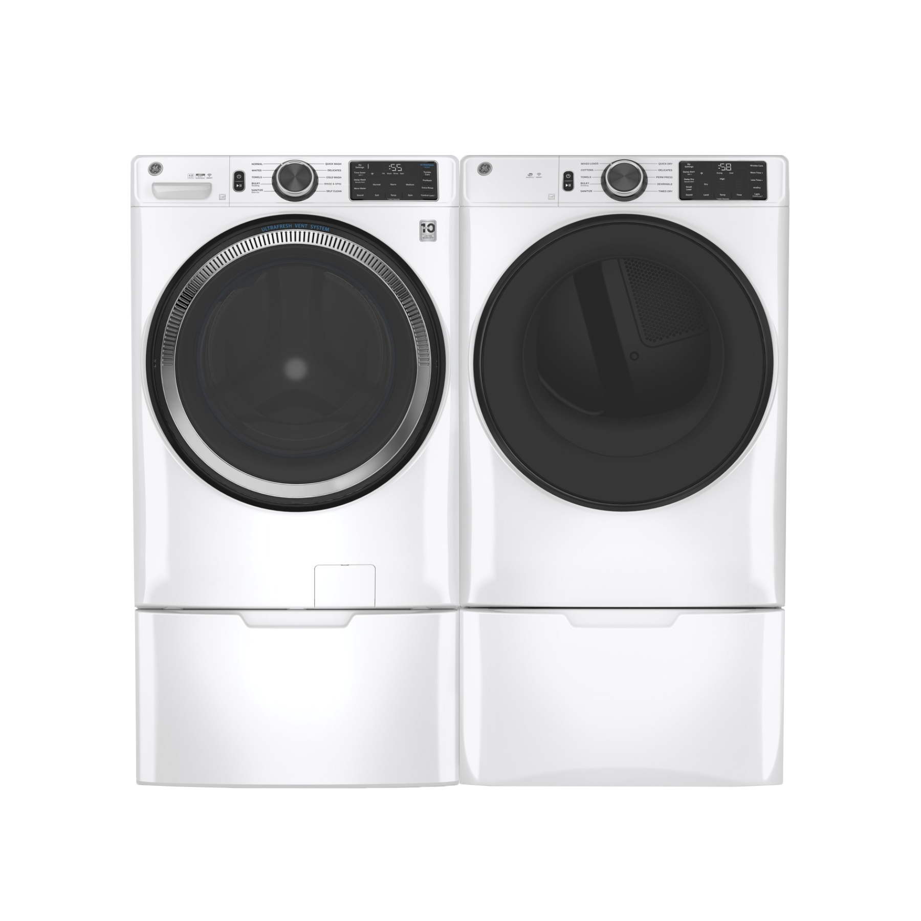 This smart front-load laundry pair includes the 4.8 cu.ft. front load washer GFW550SSNWW with Microban antimicrobial technology, and 7.8 cu.ft. electric dryer GFD55ESSNWW. This smart pair is connected and powered by GE SmartHQRead More