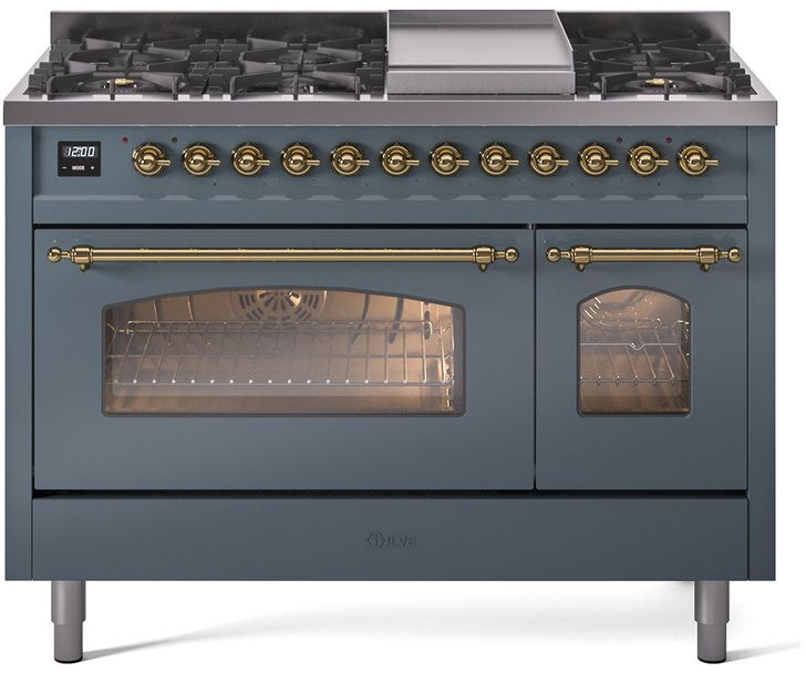 Nostalgie range cookers integrate highly professional technologies and excellent materials with a classic style that is always inspiring. Undisputed protagonists of the kitchen, they offer a complete choice of sizes (from 30 to 60 inches) and various configurations: you can choose the flush-top induction up to 6 cooking zones with bridge function for 48 inches version, single or double oven, standard colors or RAL colors on request, various finishes and accessories. Only available as an option for the Nostalgie collection, Noblesse frames are more than just a detail: they are a fine design feature that frames the front panels, matching the metallic finishes of the handles and knobs. The blind door inspired by the past is another option that elegantly enriches the style of Nostalgie.