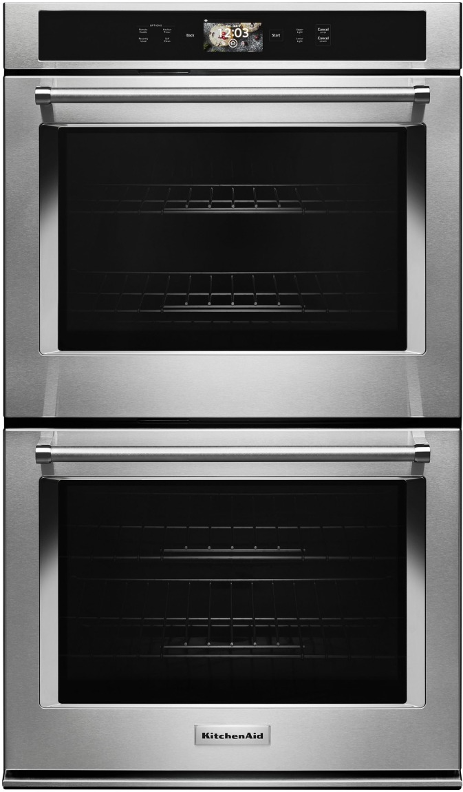 Open up new culinary possibilities. KitchenAid introduces the first double wall oven that comes with interchangeable attachments in the tradition of the iconic KitchenAid® Stand Mixer to enable grilling, stone cooking and steaming. As cooks expect today from a premium wall oven, it also supports a full complement of smart capabilities as well as baking, broiling and Even-Heat™ True Convection.Read More