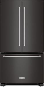 Enjoy freshness within reach. This KitchenAid® counter-depth French door refrigerator features an interior water dispenser to keep the outside looking sleek. Get customizable storage with an adjustable wood-look nesting shelf and convenient space for wide items.Read More