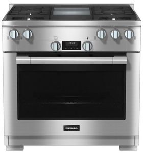 36 inch range All Gas with DirectSelect, Twin convection fans and M Pro dual stacked burners. Turn dial operation with display - DirectSelect. Maximum variety - four powerful burners and a griddle. Fast heating time and even heat distribution – TwinPower. Easy clean-up - Self-cleaning and dishwasher-safe grates. Easy opening & closing - noise and vibration absorbers.Read More
